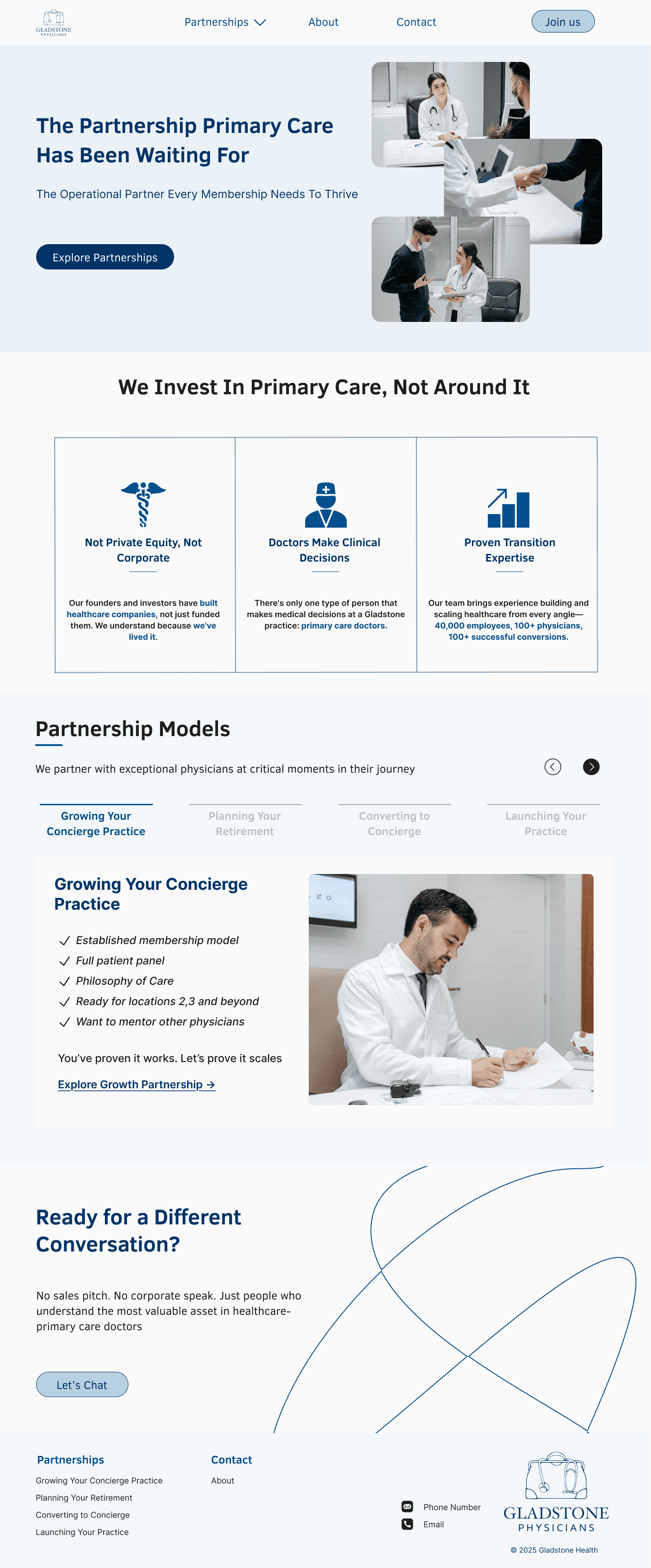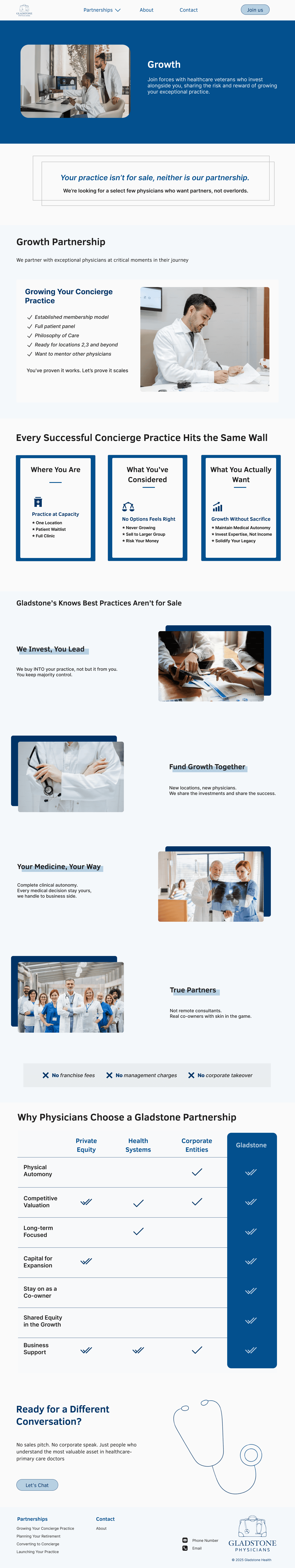 Physicians landing on Gladstone’s website were confused about what the company actually did and how it was different from private equity or corporate healthcare. Because of that, it was hard to trust the model or know what step to take next.